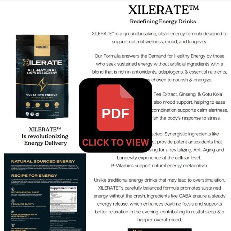 XILERATEisn't just another energy drink—it’s a revolution in clean, healthy energy. Designed for both traditional energy drink fans and health-conscious individuals, XILERATE delivers a powerful, feel-good boost in as little as 5–10 minutes—and it lasts for hours. This groundbreaking formula fuels your body and mind naturally, enhancing mood, vitality, and longevity without the crash.